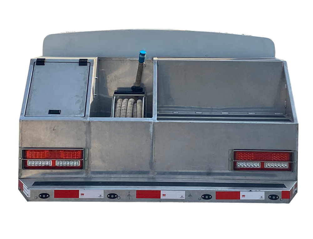 尾部框架為框架式結(jié)構(gòu),左側(cè)為水管箱和過濾器箱,右側(cè)為梯凳,外表面全部防銹蝕、防滑型花紋鋁板。